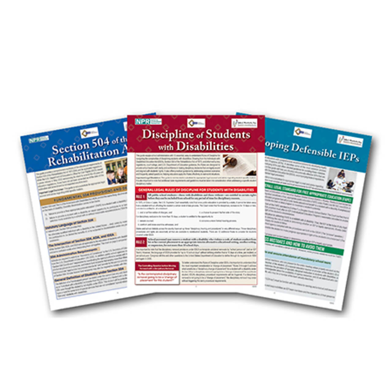 This set of three (3) tri-fold laminated guides were published in partnership with CASE and Julie Weatherly, Esq. They equip educators with essential, easy-to-understand information for navigating the complexities of Section 504, Disciplining Students with Disabilities, and Developing Defensible IEPs.